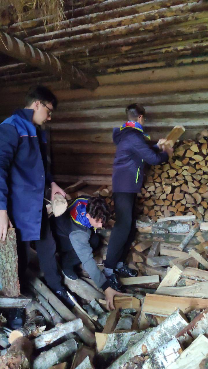 Юные спасатели сегодня активно участвуют в помощи одиноко проживающим пожилым гражданам, складывая дрова и убирая в хозяйственных постройках. Все работы проводятся под руководством инспектора пропаганды Петриковского РОЧС Шамра С. Д.