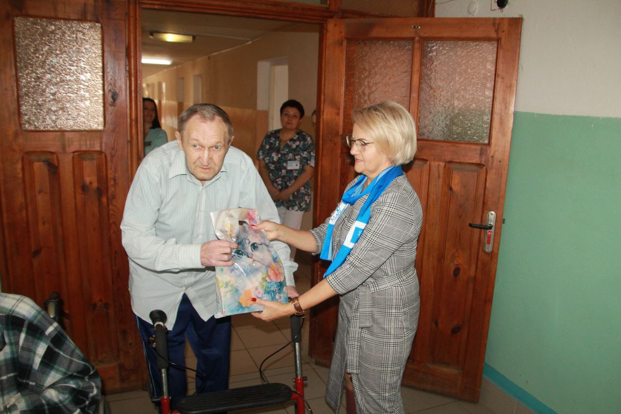 На сегодняшний день в УЗ находится 23 проживающих, нуждающихся в социальной и медицинской поддержке. Всем пациентам вручены подарки. Встреча была наполнена атмосферой заботы и любви.