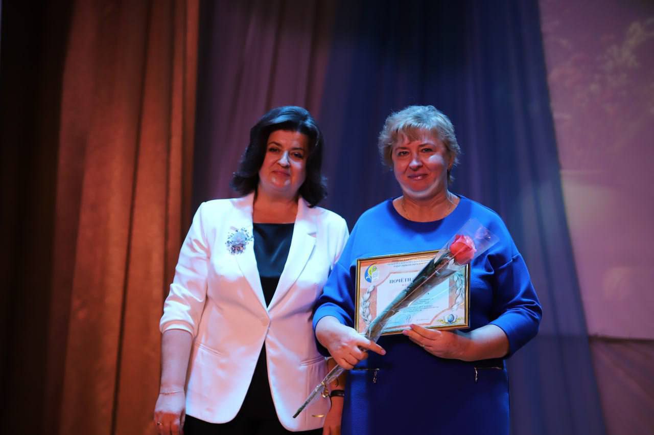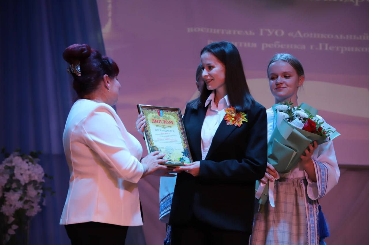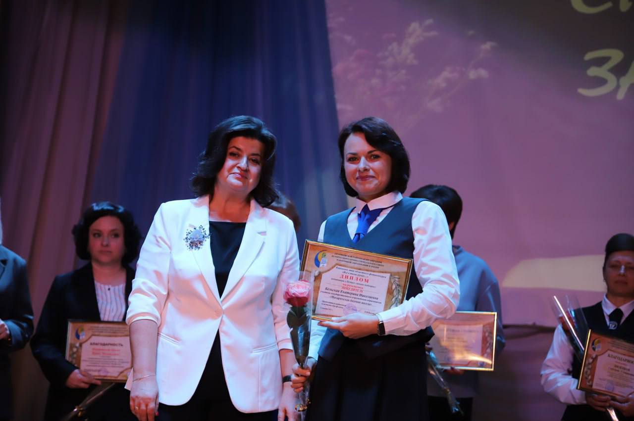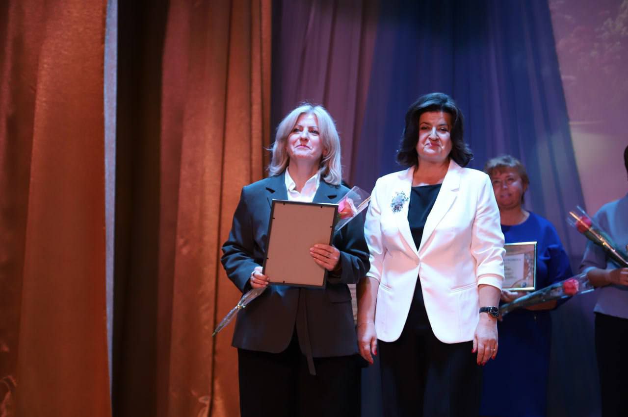 Кранальным момантам у час ўрачыстасці стала ўручэнне ўзнагароды «За адданасць прафесіі- 2025» загадчыку Петрыкаўскага раённага вучэбна-метадычнага кабінета Марыне Кульбе.