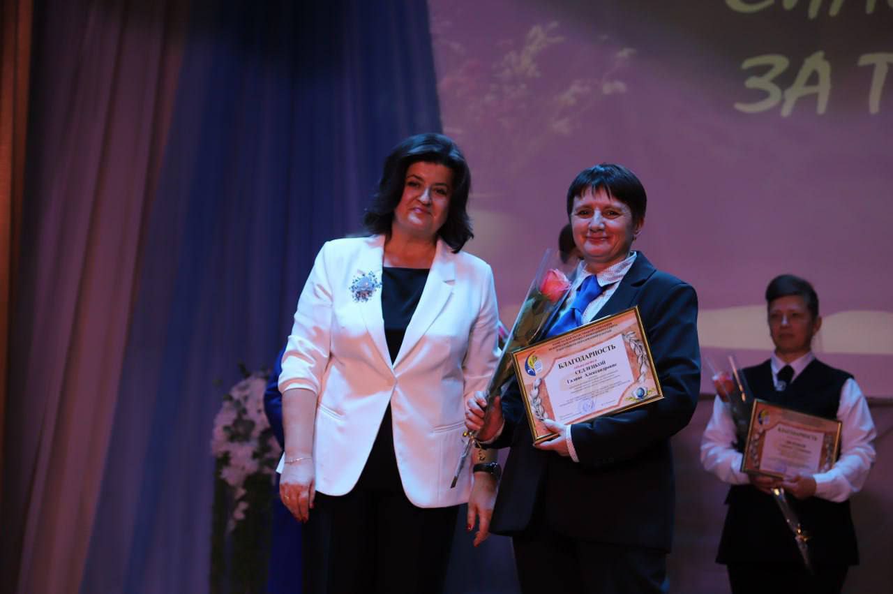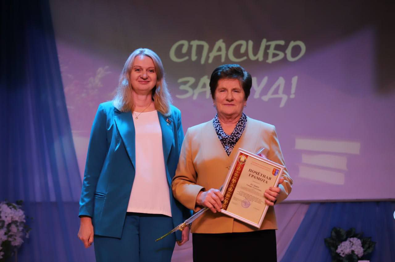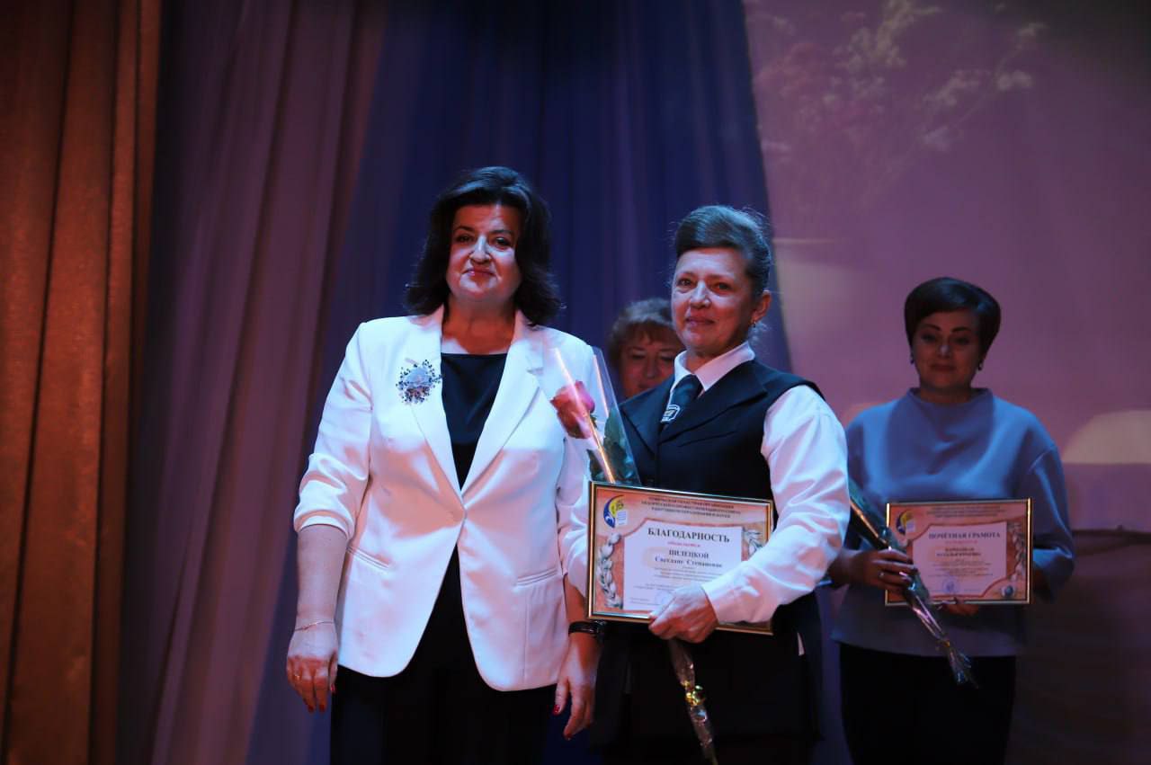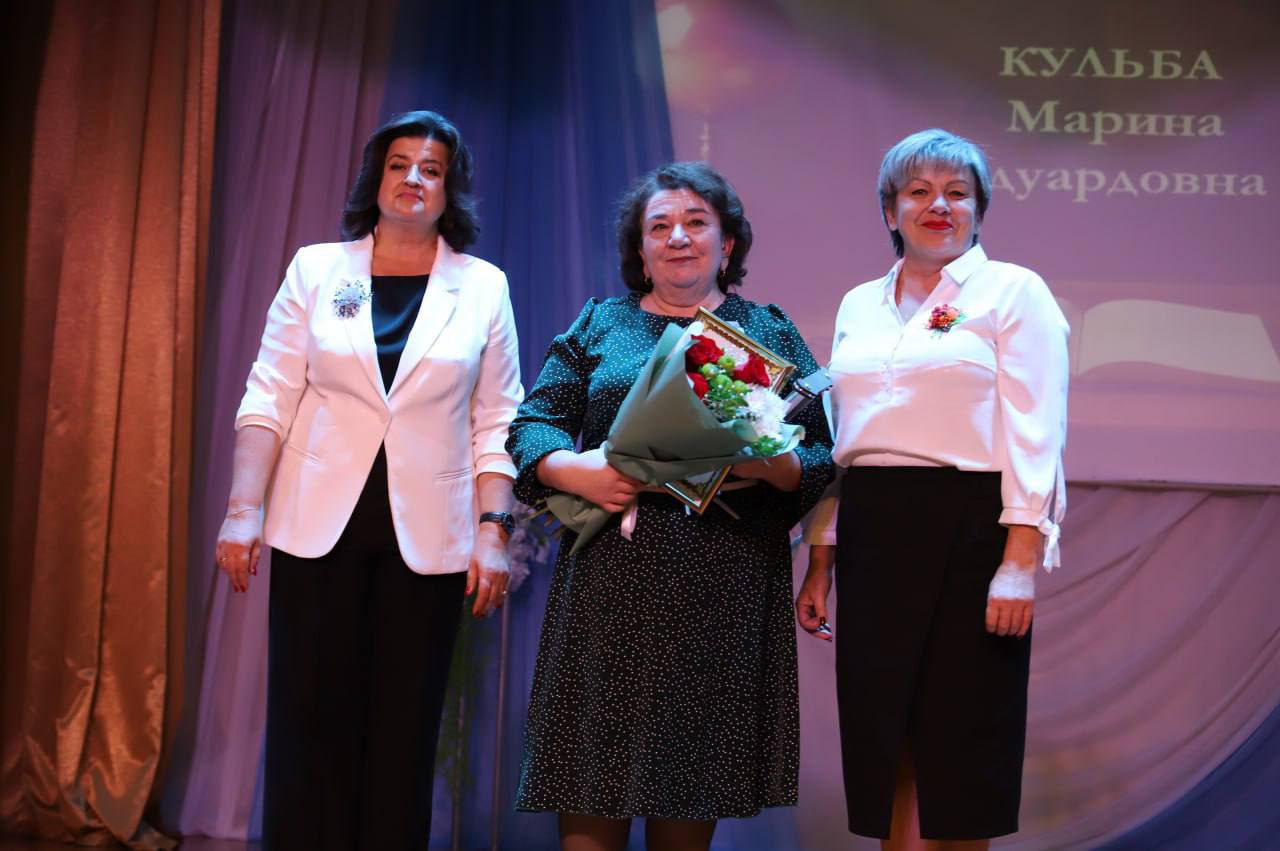 Кранальным момантам у час ўрачыстасці стала ўручэнне ўзнагароды «За адданасць прафесіі- 2025» загадчыку Петрыкаўскага раённага вучэбна-метадычнага кабінета Марыне Кульбе.