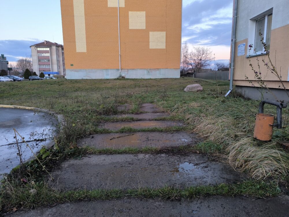 Днямі давялося назіраць такую карціну: тратуарная дарожка каля шматпавярховак па вуліцы Каралёва рызыкуе ператварыцца ў вузкую, зарослую хмызняком сцежку.