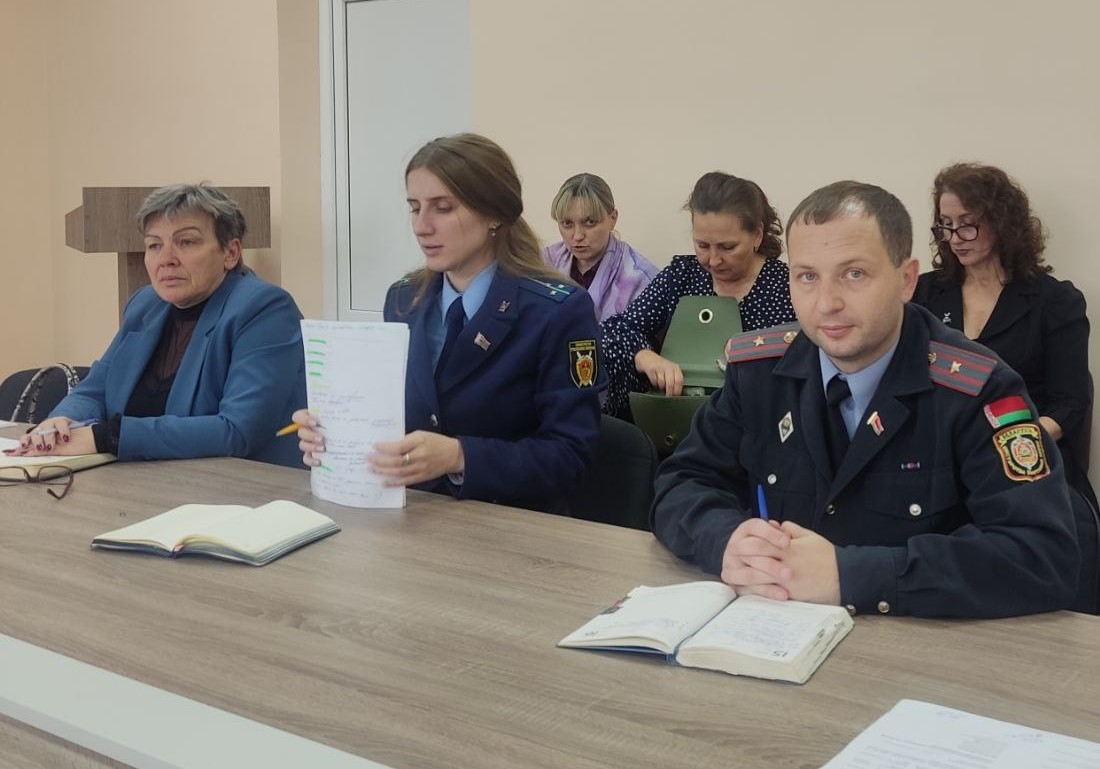 Удзельнікі пасяджэння: члены КСН, памочнік пракурора Петрыкаўскага раёна, суб’екты прафілактыкі, кіраўнікі ўстаноў адукацыі. Мерапрыемства праходзіць пад кіраўніцтвам намесніка старшыні райвыканкама Наталлі Ходзька. На парадак дня вынесены пытанні эфектыўнасці міжведамаснага ўзаемадзеяння з сем’ямі, дзеці якіх маюць патрэбу ў дзяржаўнай абароне; арганізацыі ўзаемадзеяння суб’ектаў прафілактыкі ў пытаннях папярэджання сацыяльна небяспечнага становішча; арганізацыі работы па прафілактыцы сямейнай нядобранадзейнасці; сістэмы работы з сем’ямі, якія апынуліся ў цяжкай жыццёвай сітуацыі.