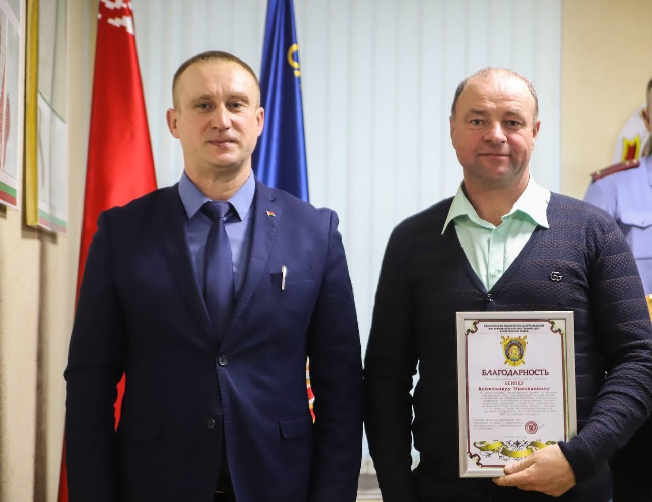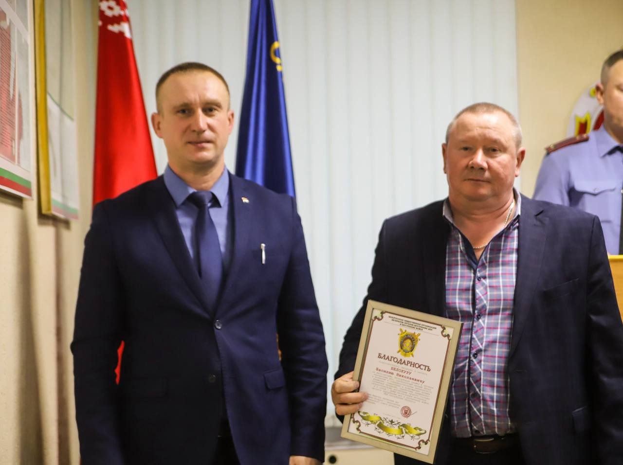 У гэты дзень гучалі словы падзякі за вернасць абавязку, за мужнасць і самаахвярнасць, праяўленыя ў самыя няпростыя часы. Так, за шматгадовую, бездакорную службу ў органах унутраных спраў, значны асабісты ўклад у развіццё і ўдасканаленне ветэранскага руху, захаванне і адраджэнне лепшых службовых традыцый, садзейнічанне грамадзянска-патрыятычнаму выхаванню асабовага складу і ў сувязі з Днём ветэранаў органаў унутраных спраў Рэспублікі Беларусь падзяка саветніка Міністра ўнутраных спраў старшыні Рэспубліканскага савета ветэранаў аб’яўлена падпалкоўніку міліцыі ў запасе Васілію Белакуру, падпалкоўніку міліцыі ў запасе Аляксандру Блінцу. Таксама за актыўны ўдзел у рабоце першаснай ветэранскай арганізацыі АУС Петрыкаўскага райвыканкама і ў сувязі з Днём ушанавання ветэранаў органаў унутраных спраў Рэспублікі Беларусь, Ганаровая грамата Гомельскага абласнога Савета ветэранаў АУС уручана Ігару Гурыну.