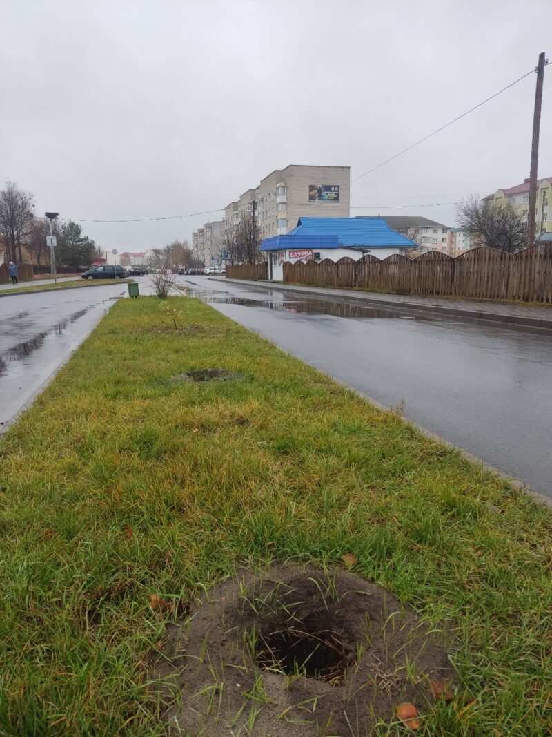 У раёне Петрыкаўскай ЦРБ, на жаль, акцыя пакінула пасля сябе не толькі пасаджаныя расліны, але і пяць лунак, якія больш за два тыдні чакаюць сваіх саджанцаў.