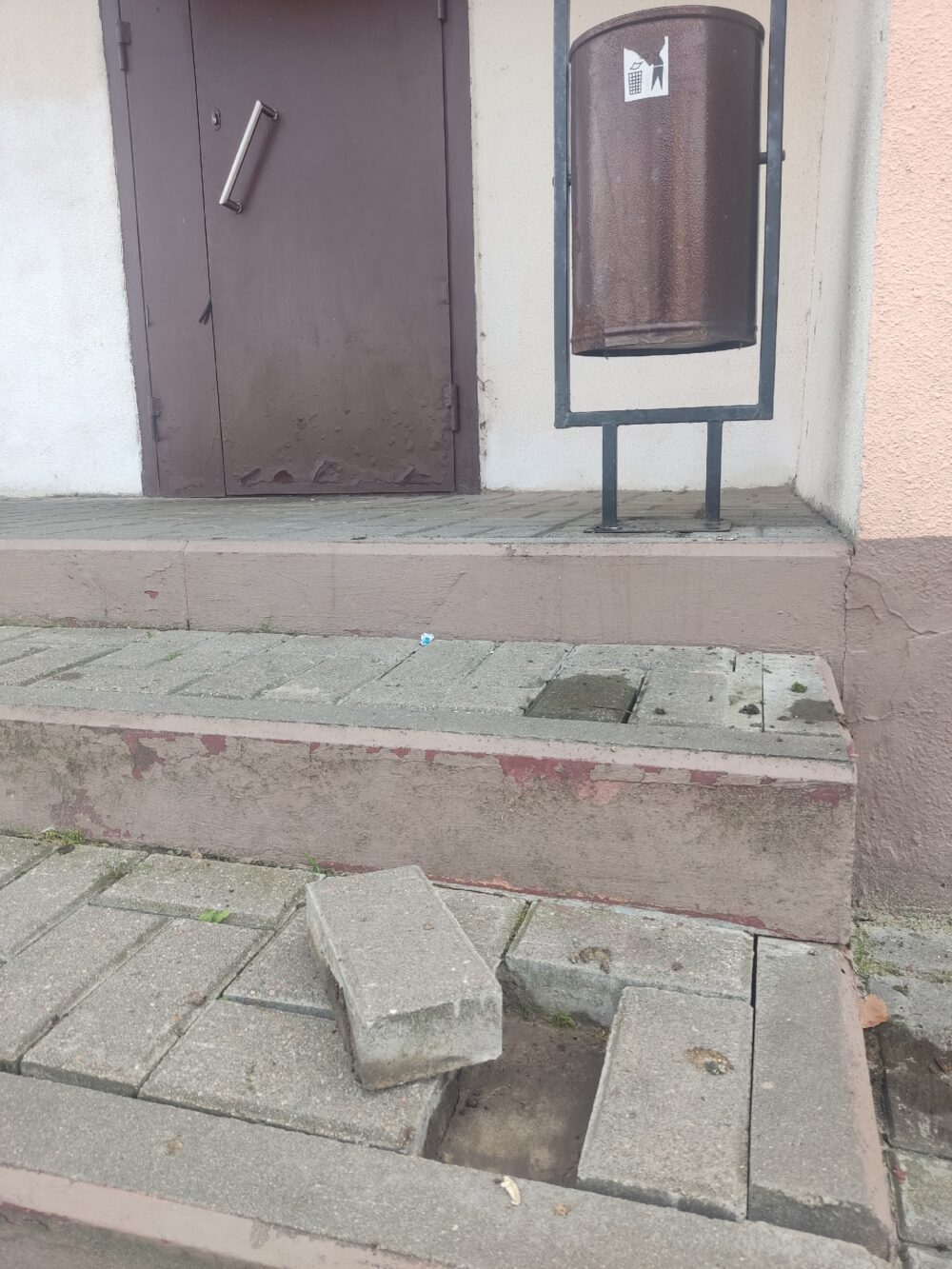 Нядаўна мой погляд прыцягнула дэталь, якая псуе агульнае ўражанне ад кафэ “Кулінарыя”: на ганку ўстановы пачала разбурацца абліцовачная цэгла.