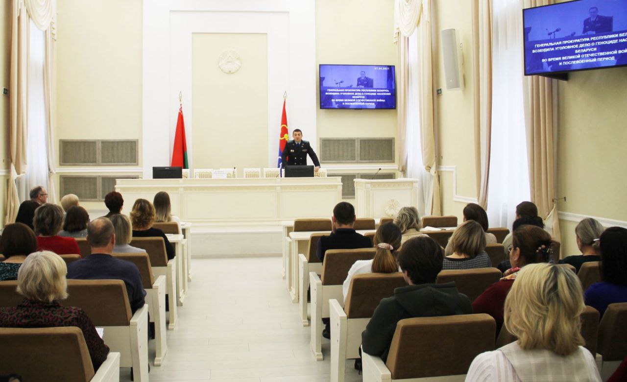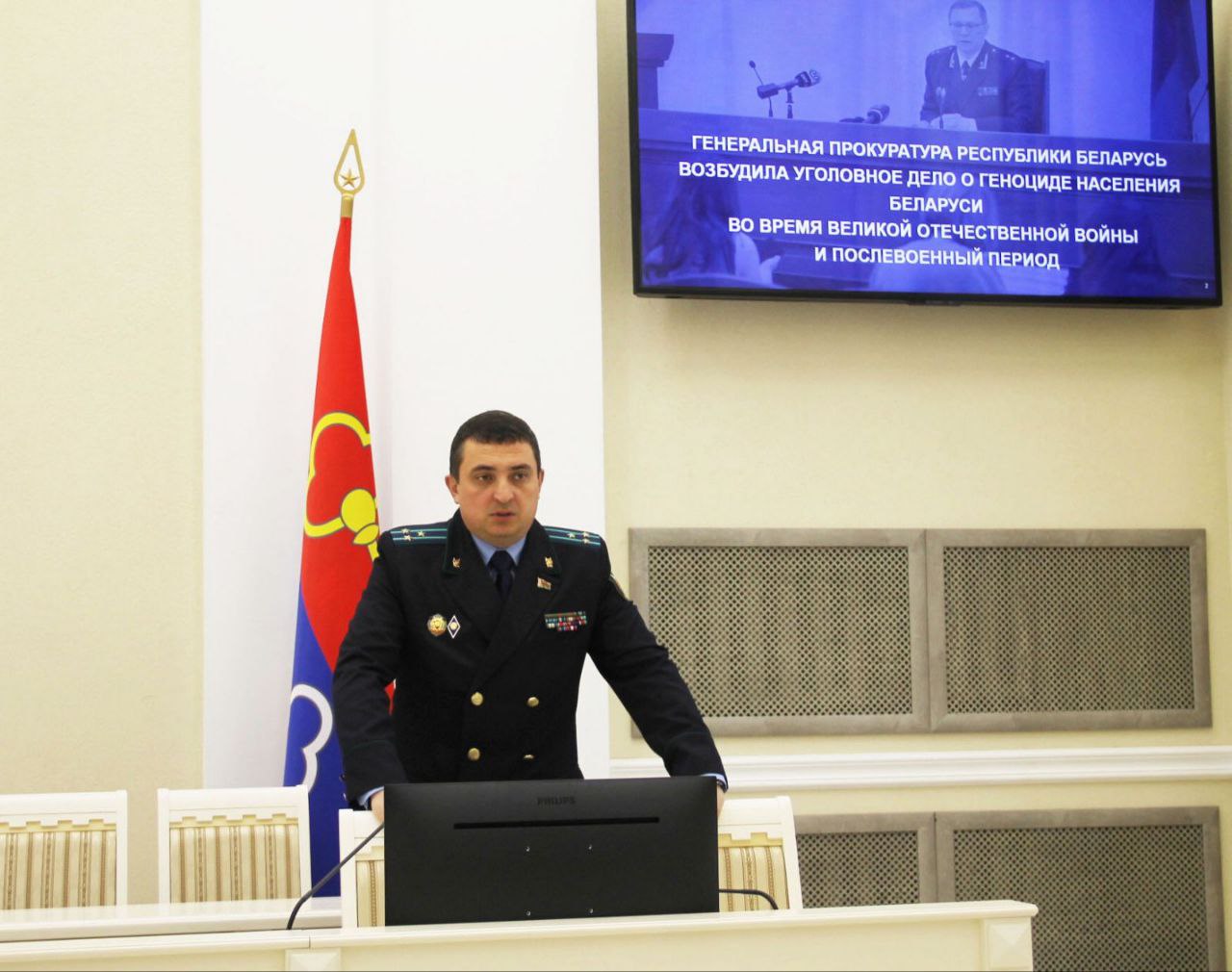 Кажучы пра працу, якую праводзіць Генеральная пракуратура па расследаванні крымінальнай справы аб генацыдзе, прадстаўнік нагляднага ведамства падкрэсліў, што мірнае насельніцтва БССР актыўна супраціўлялася захопнікам і рабіла ўсё магчымае, каб ідэі нацызму ніколі не адрадзіліся на беларускай зямлі. Дакладчык выказаў упэўненасць у тым, што ўсе спробы асобных дзяржаў перапісаць гісторыю і перакрэсліць подзвіг савецкага народа не ўвянчаюцца поспехам.