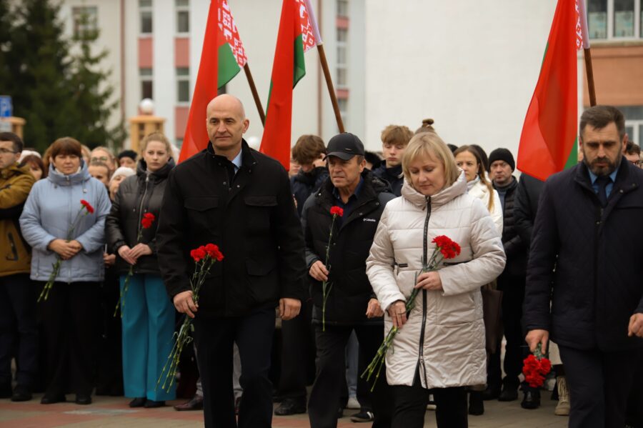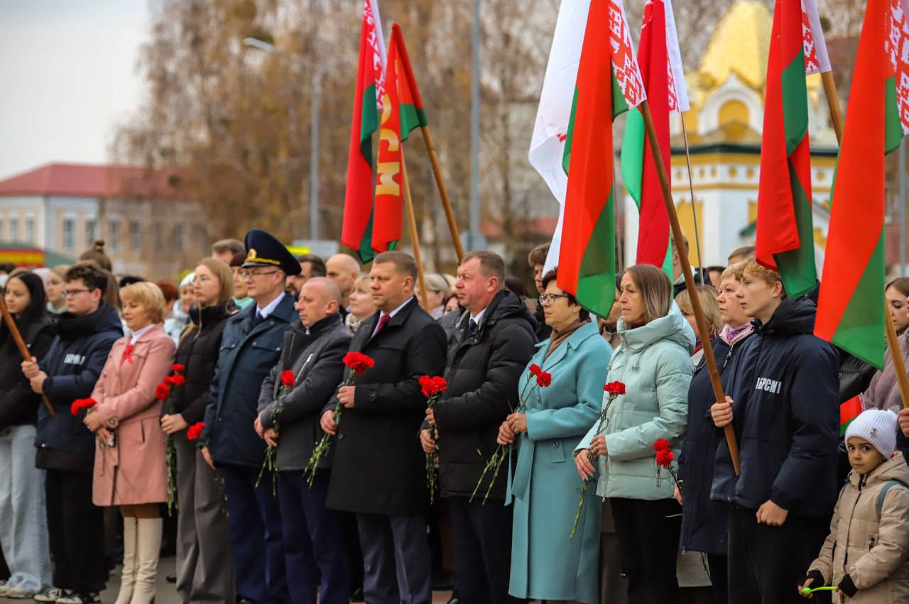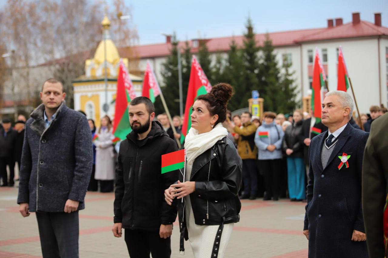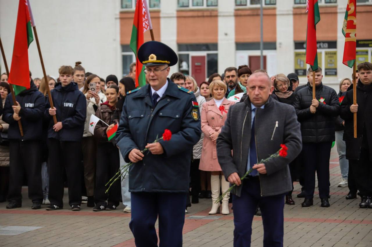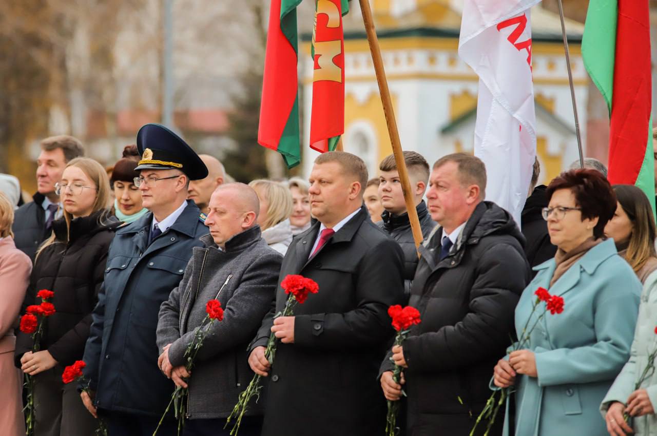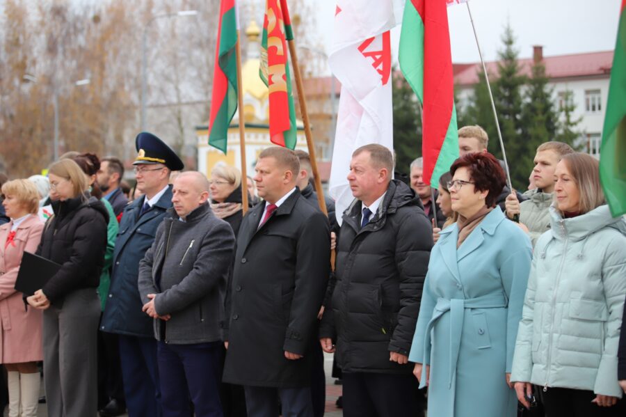 На гарадской плошчы адбыўся ўрачысты мітынг з нагоды 108-й гадавіны Кастрычніцкай рэвалюцыі.