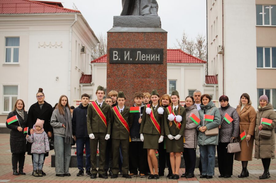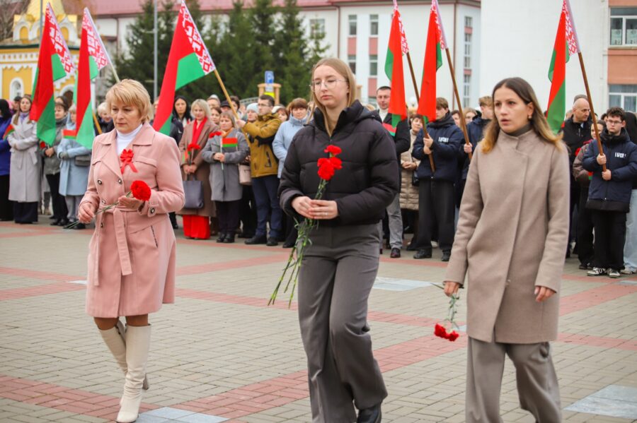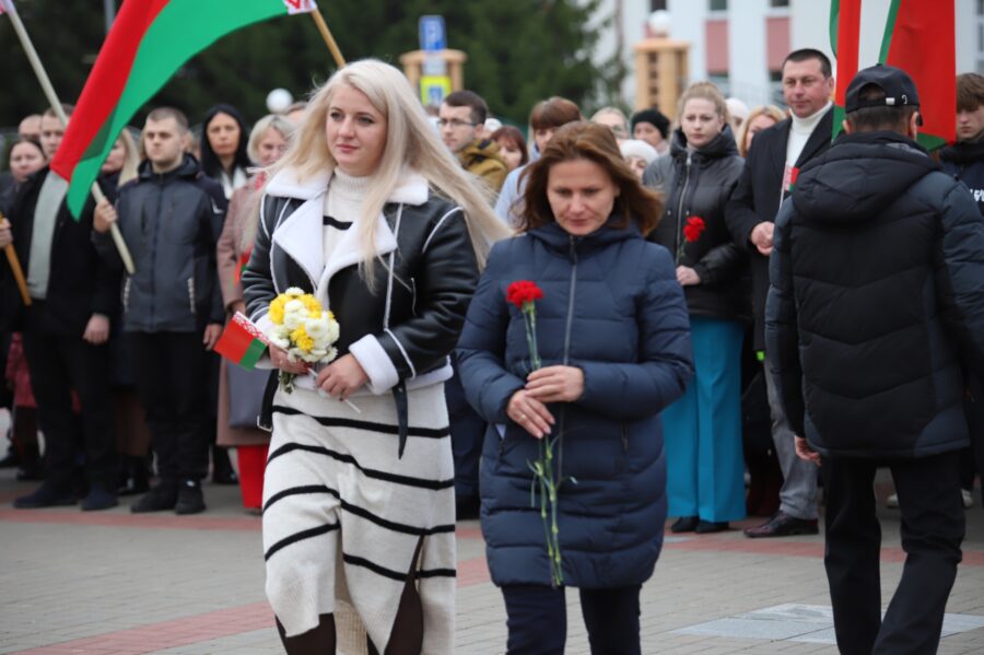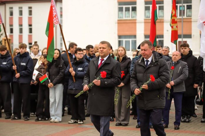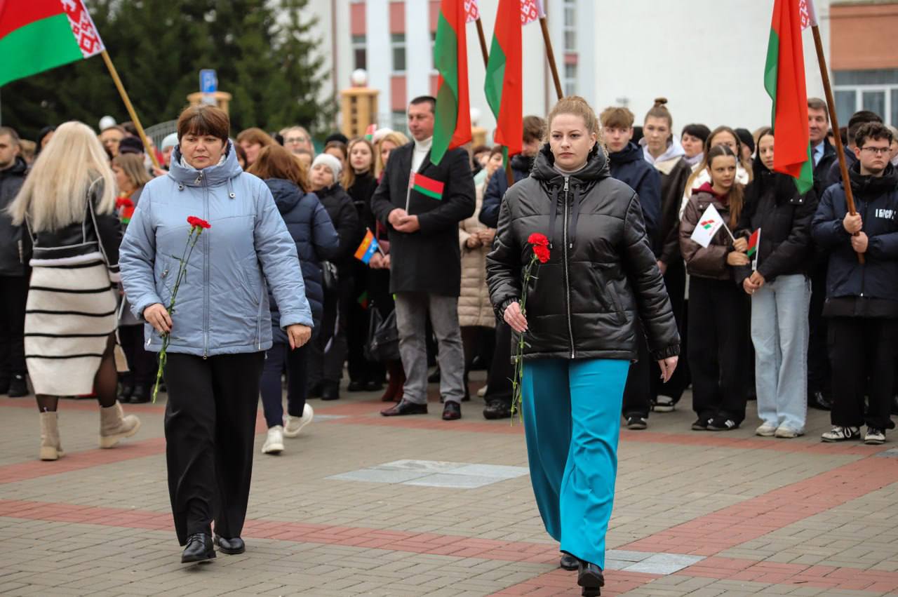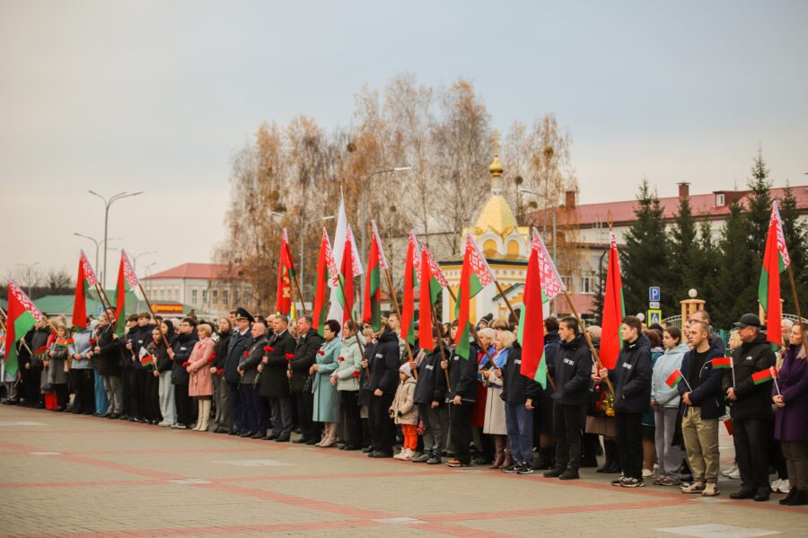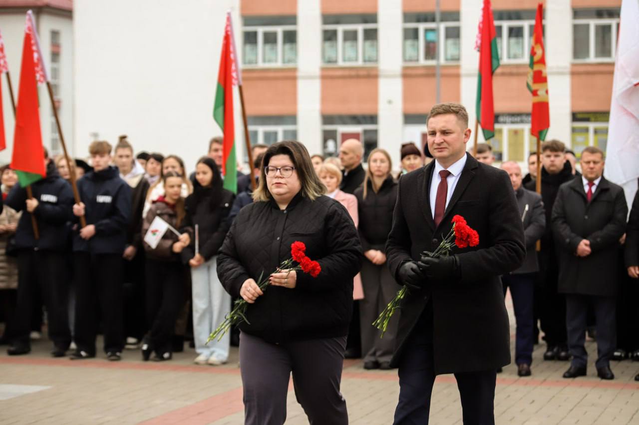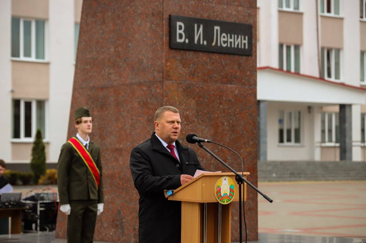 На гарадской плошчы адбыўся ўрачысты мітынг з нагоды 108-й гадавіны Кастрычніцкай рэвалюцыі.