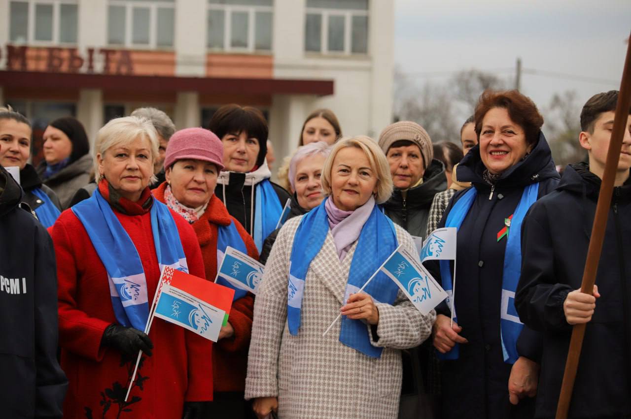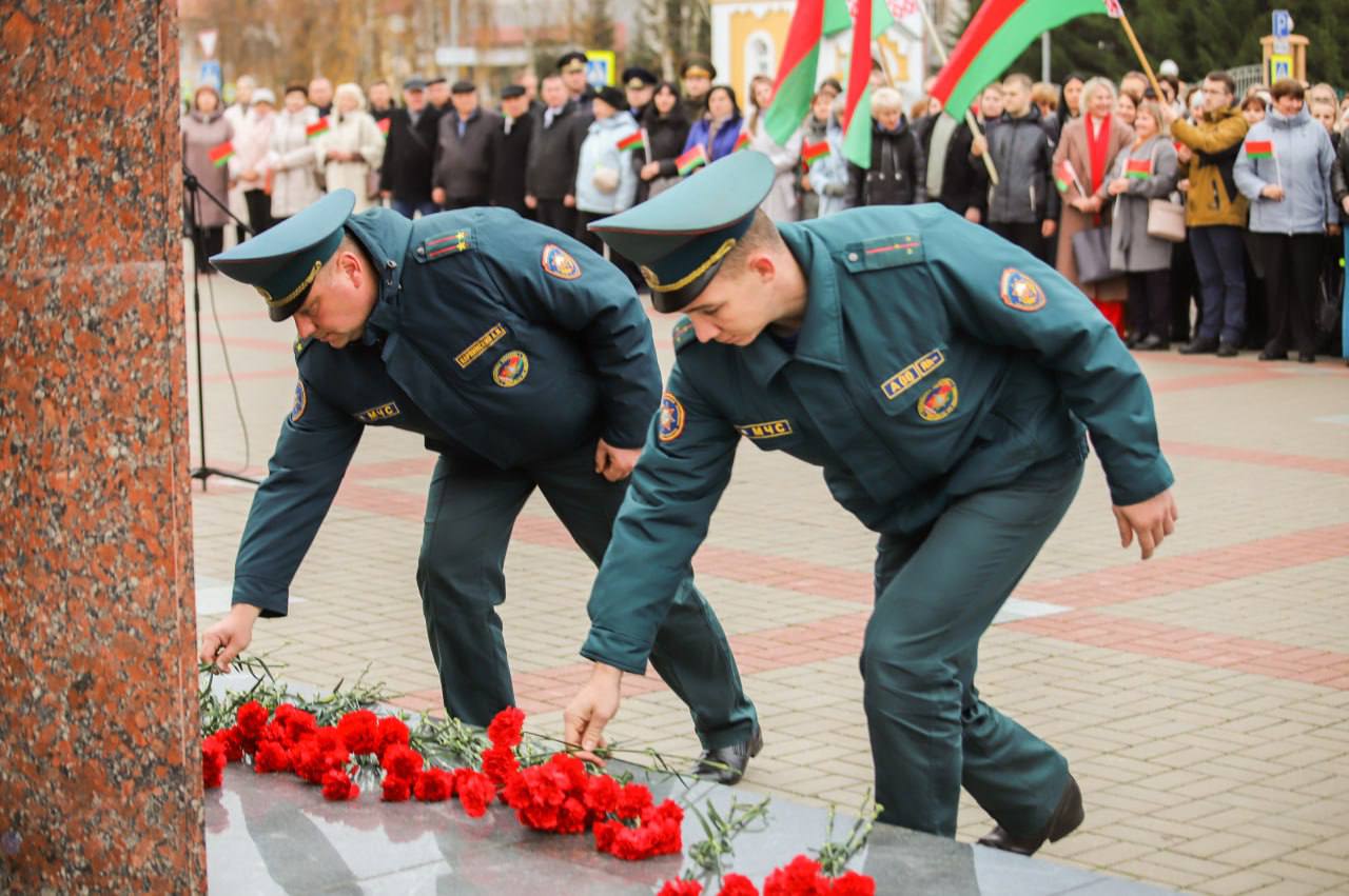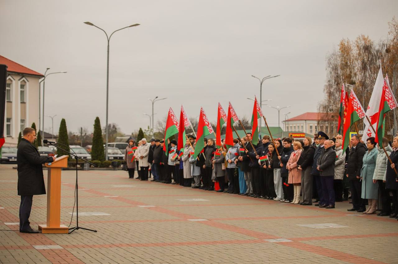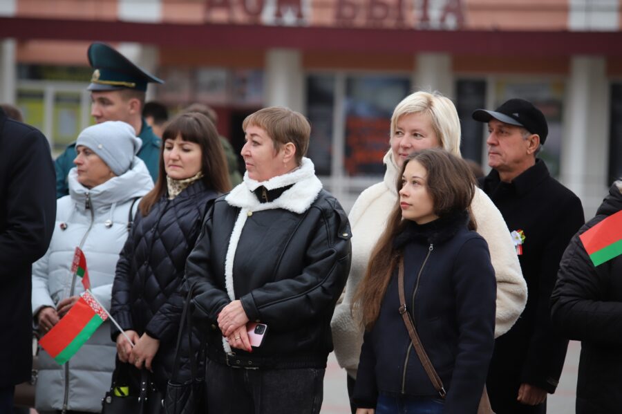 На мерапрыемстве прысутнічалі прадстаўнікі адміністрацыі раёна на чале са старшынёй райвыканкама Аляксандрам Верамеевым, супрацоўнікі сілавых структур, актывісты грамадскіх аб’яднанняў і палітычных партый, работнікі працоўных калектываў розных пакаленняў.
