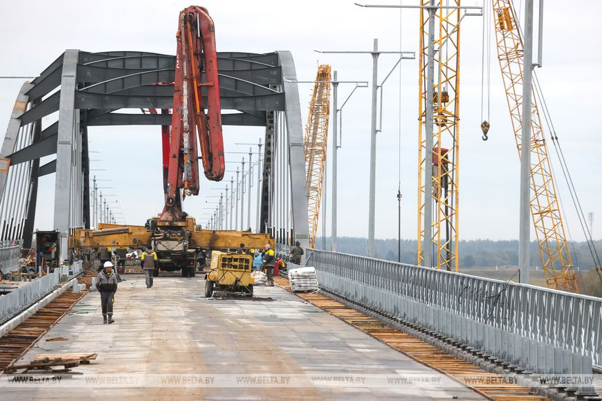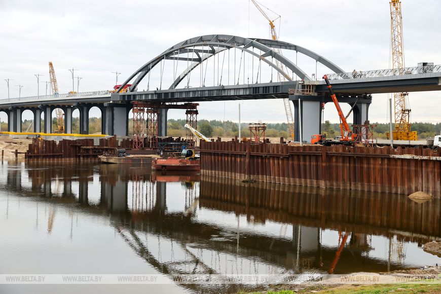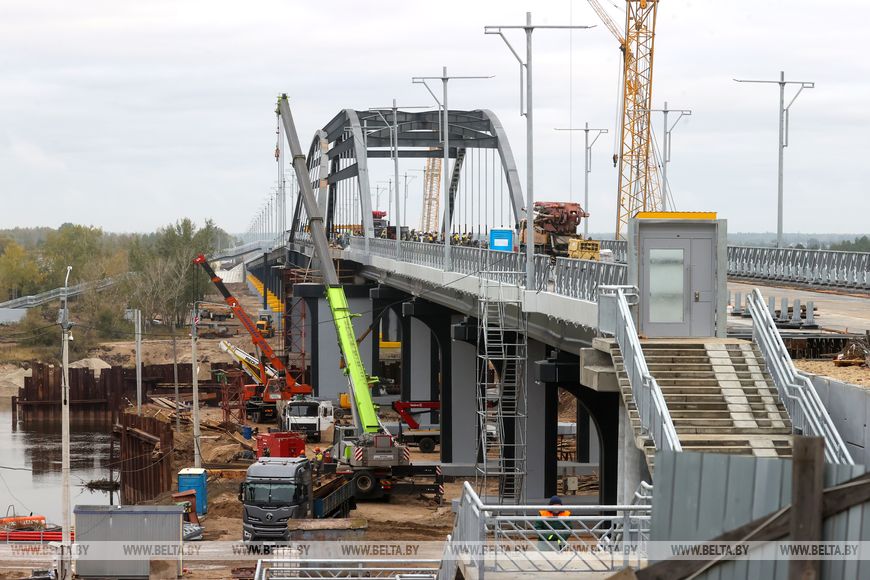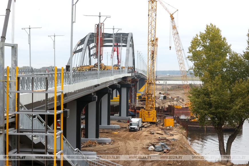 Работы по возведению моста через Припять в Мозыре вступили в завершающую стадию. Строители приступили к благоустройству нового моста: установлены мачты освещения, перильное ограждение, идет их покраска. С учетом подрядных организаций ежедневно на объекте работают около 150 человек, задействовано порядка 60 единиц техники. Длина моста через Припять в Мозыре — одного из самых больших в стране — составляет 924 м.