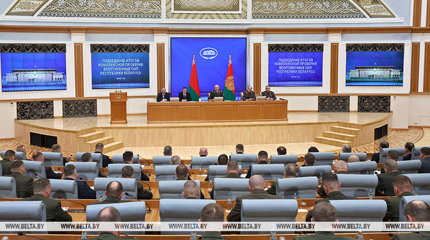 Президент Беларуси Александр Лукашенко собрал совещание для подведения итогов комплексной проверки Вооруженных Сил. Участниками совещания у главы государства стали около 300 человек, в числе которых — командиры соединений, привлекавшихся к проверке, передает БЕЛТА.