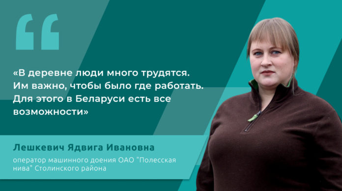 Ядвиге Лешкевич 38 лет. Всю свою жизнь он живет в родном Столинском районе. «Я из агрогородка Ремель. Где родилась, там и живу. С 18 лет стала работать оператором машинного доения. Мужа встретила здесь, он приехал к нам в Ремель работать. У нас трое деток», — рассказала женщина о своей жизни.