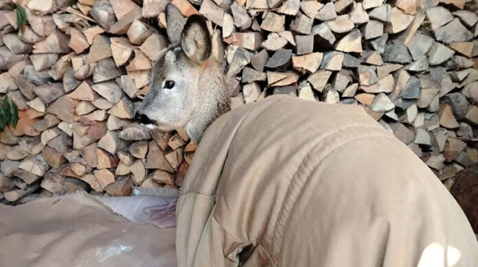 Как рассказала Татьяна, которая вместе с мужем помогала спасать косулю, дикое животное само пришло за помощью. «Она сама вышла к нашему дому. Вся замерзшая, на мордочке аж сосульки изо льда висели. Совсем молоденькая еще, рожки небольшие», — сказала женщина.