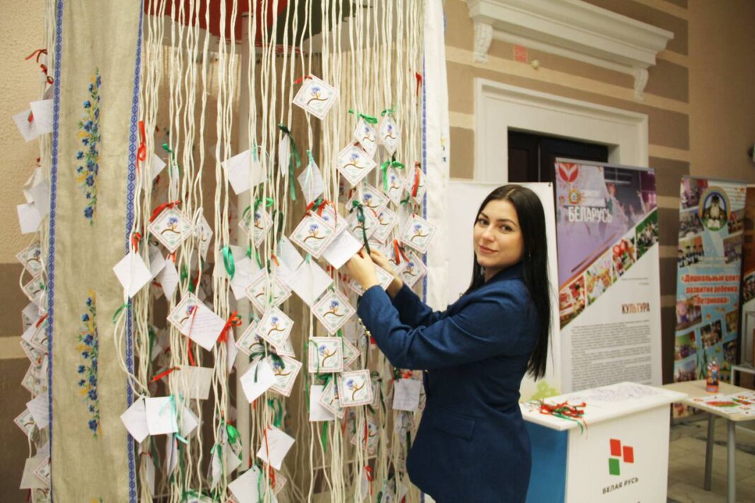 Старшыня маладзёжнага савета пры Петрыкаўскім раённым Савеце дэпутатаў Марыя Тамко дзеліцца ўражаннем ад наведвання выставы «У адзінстве народа – будучыня краіны»: