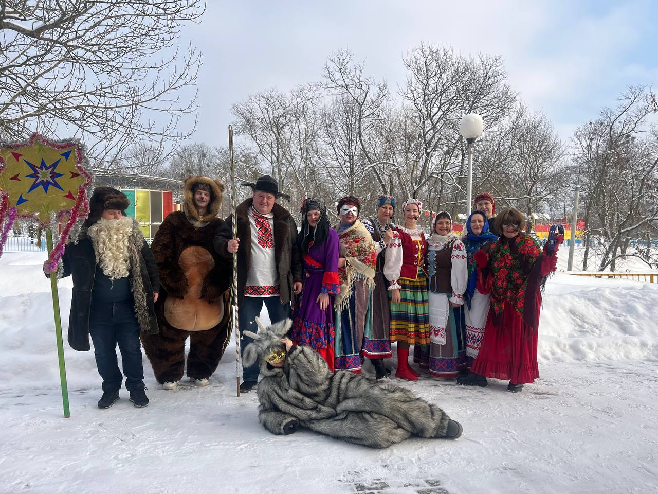 А ў нас зноў свята — Новы год па старому стылю, святкуем Калядкі! У раённы дом культуры завіталі незвычайныя госці — шчадроўшчыкі. Песні спяваюць, шчасця і добрага ўраджаю жадаюць, танчаць. І мядзведзь, і дзед з бабай, і цыганкі-варажбіткі — усё прыйшлі.